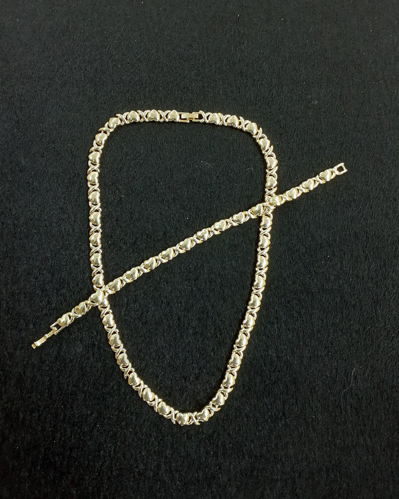 14k Gold Filled Womens 💖 Xoxo Hugs and Kisses Full Set Chain And Bracelet