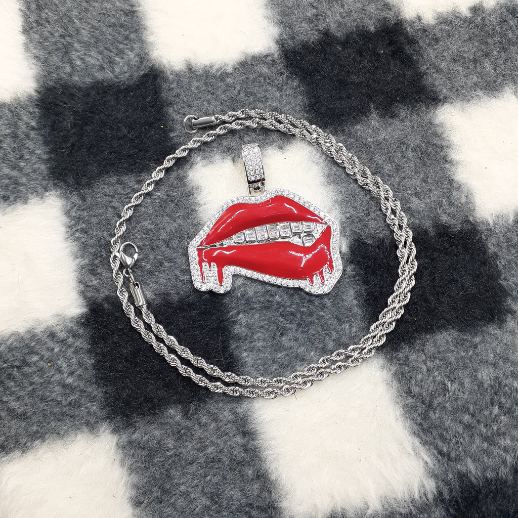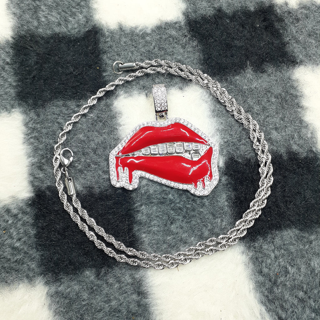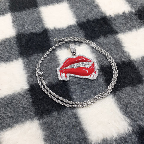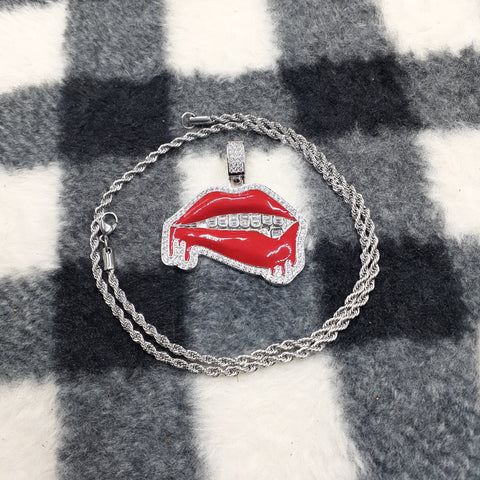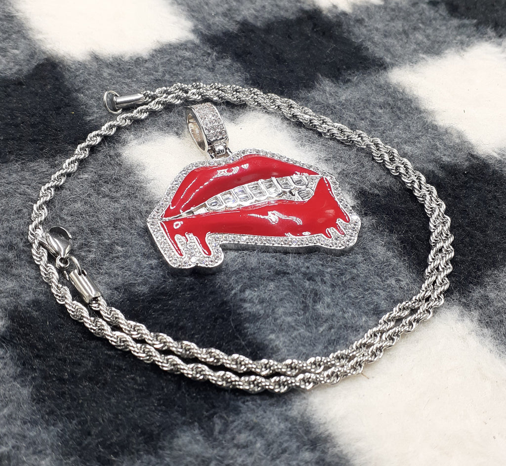 14k white gold-plated rope chain and lips ended made from stainless steel