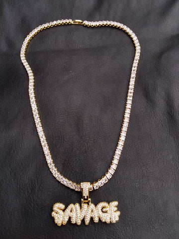 4mm 20inch chain / Gold Savage Charm front Picture - $80.00 USD