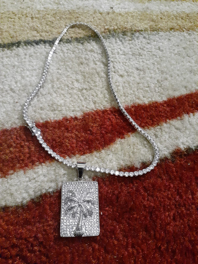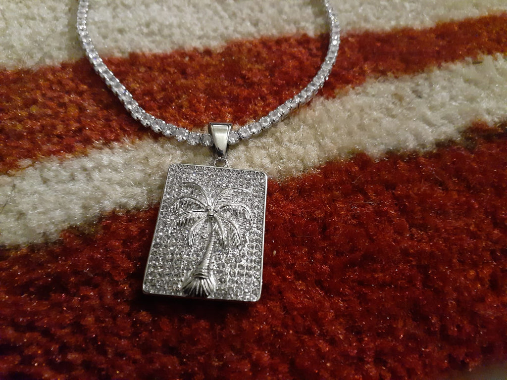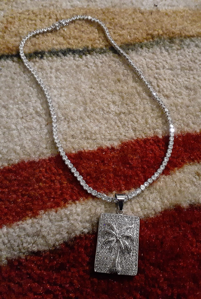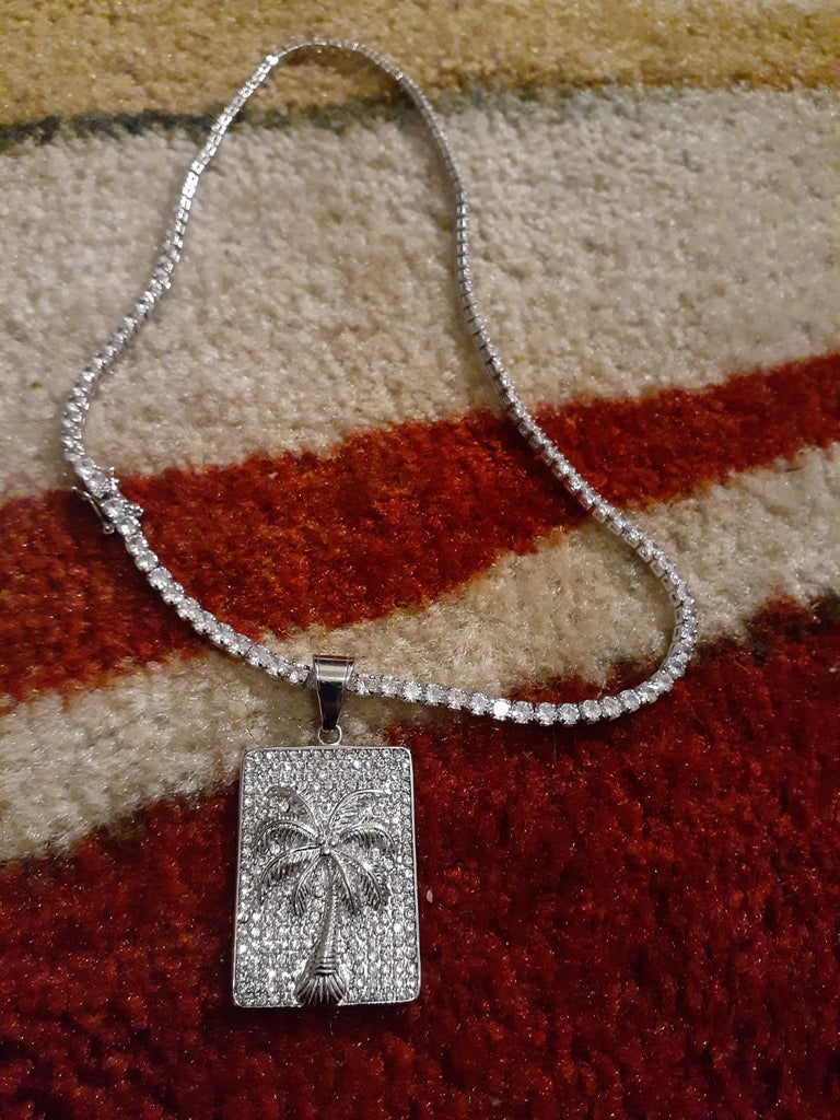 14k Ice out White Gold filled 20inch Tennis and Charm