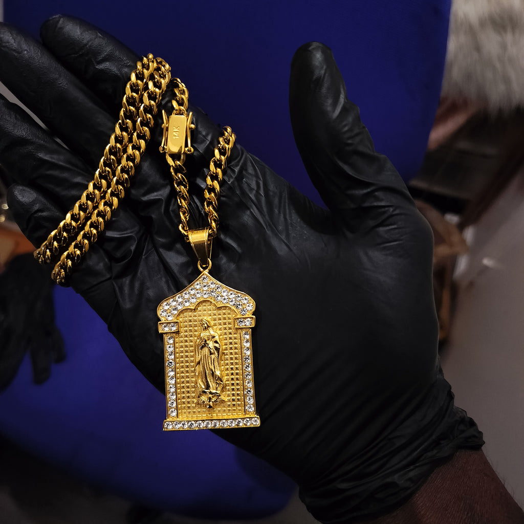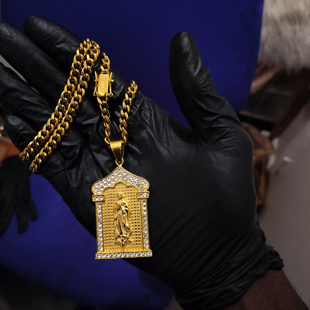 14k 6mm Gold Plated Cuban link Chain and Pendant