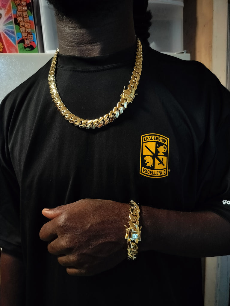 14k Gold Plated 15mm Miami Cuban Link Chain and Bracelet