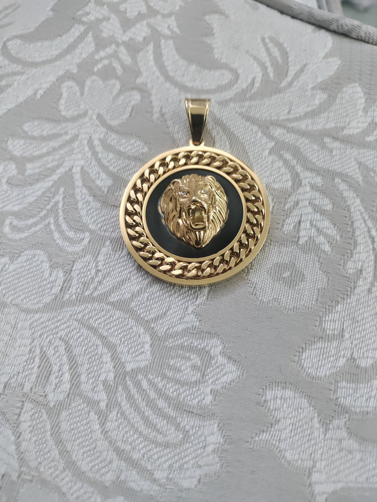 Special order Gold and silver lion pendant....st barba and crown pendant
