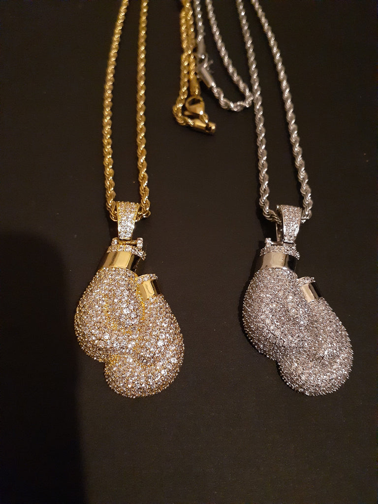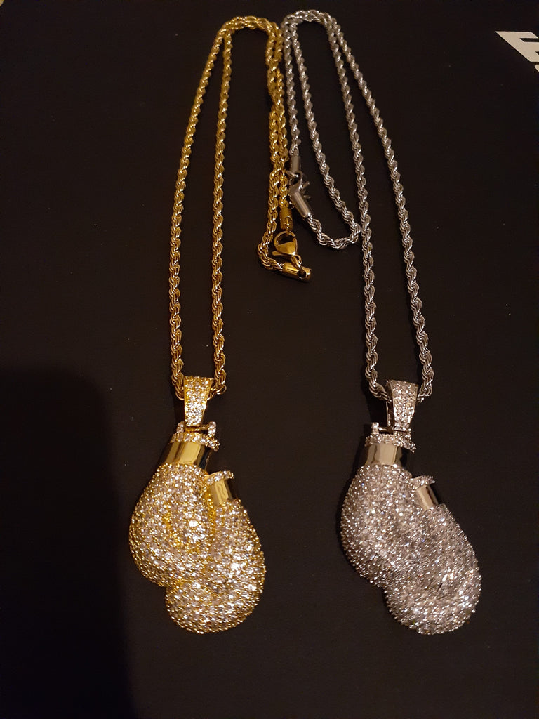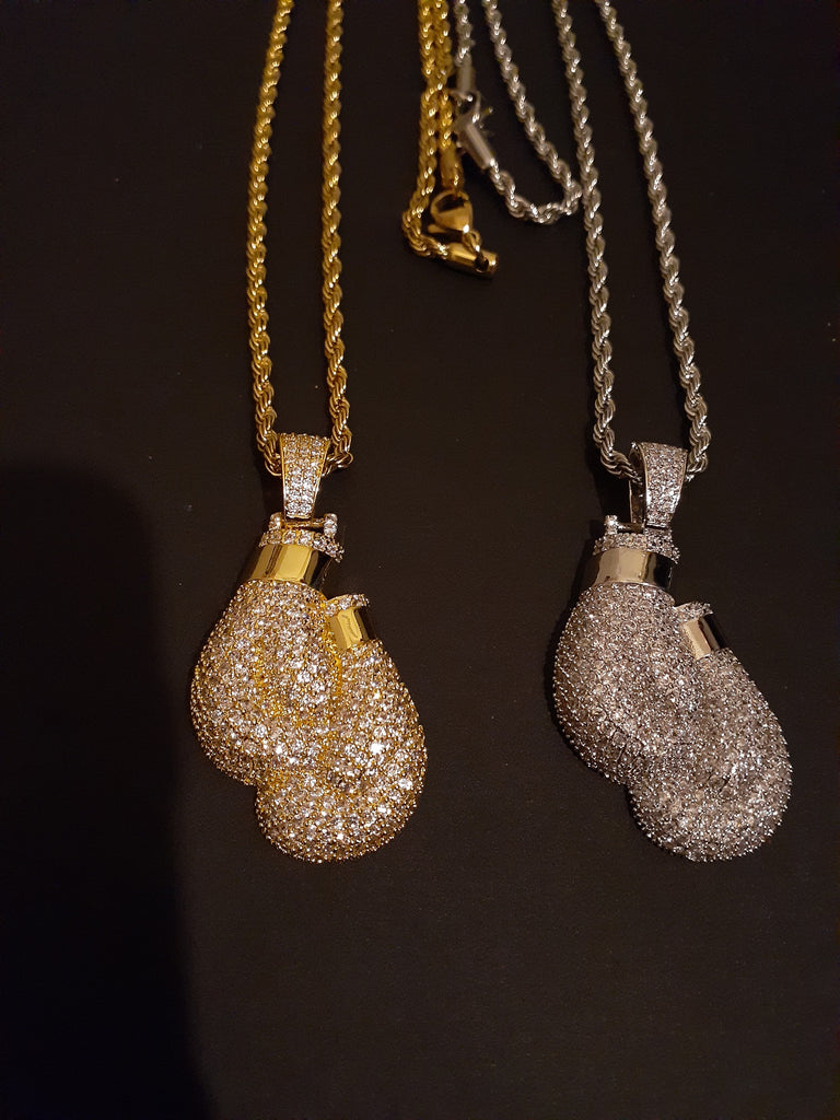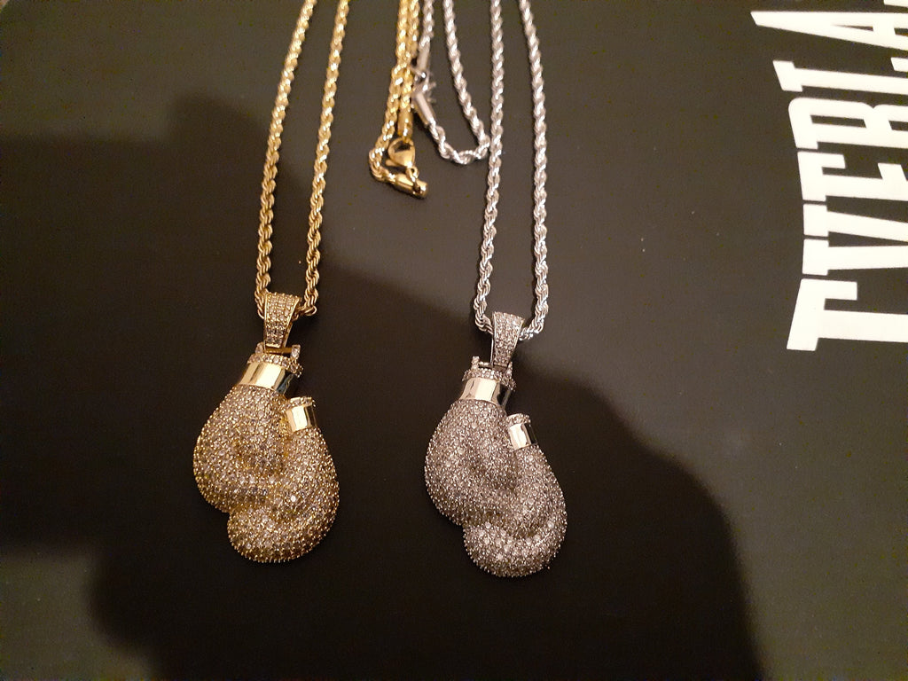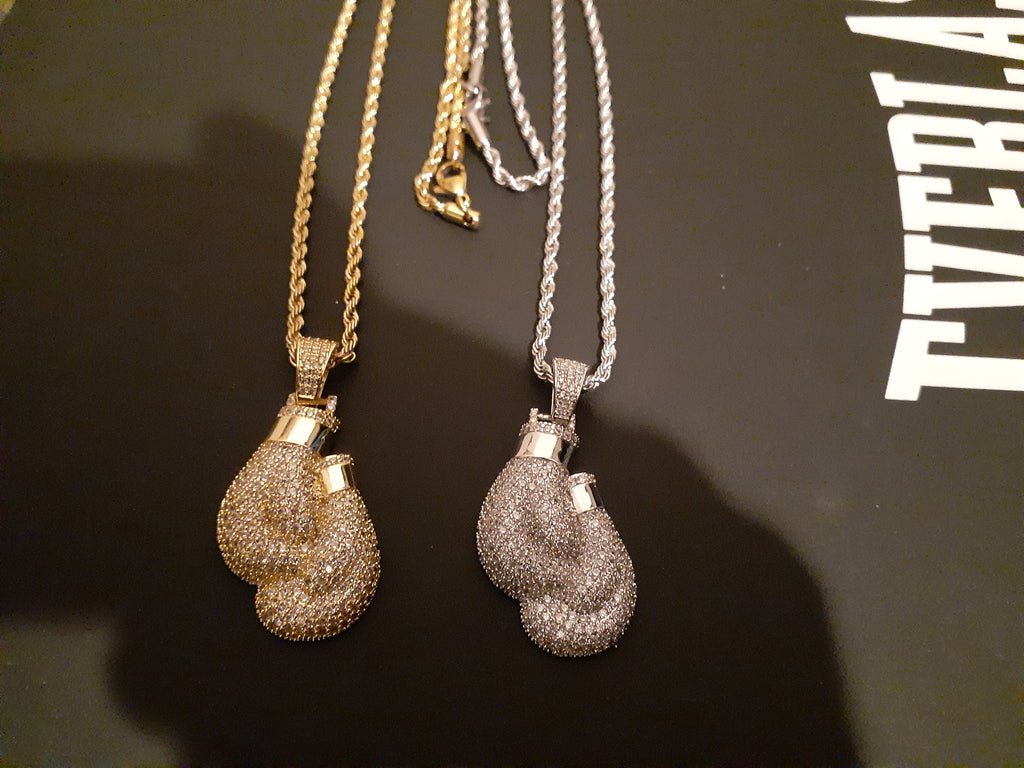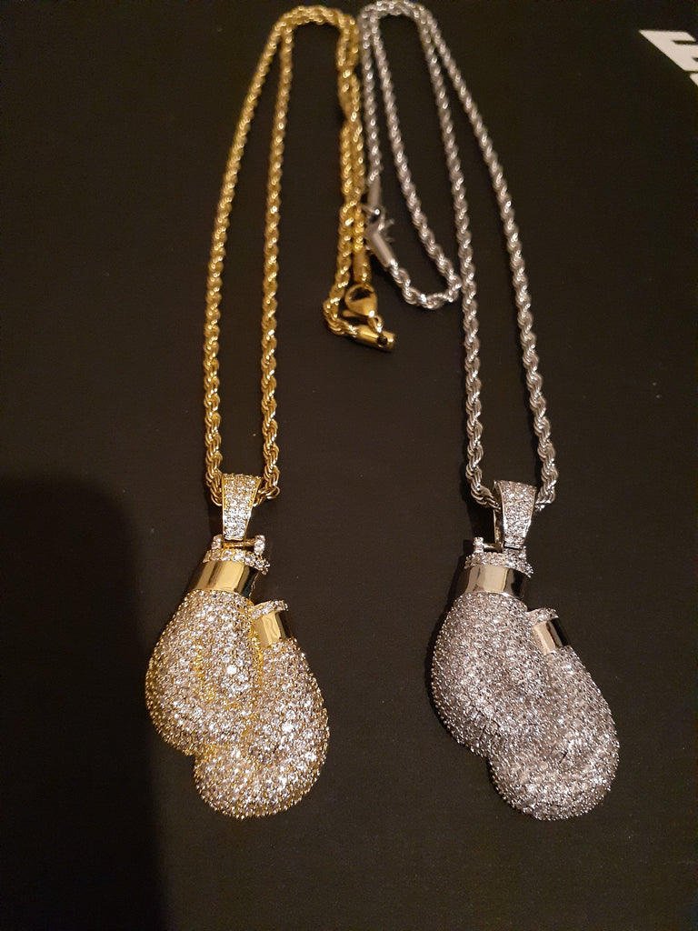 14k 3mm Gold Plated Rope Chain and Boxing Glove Pendent Set