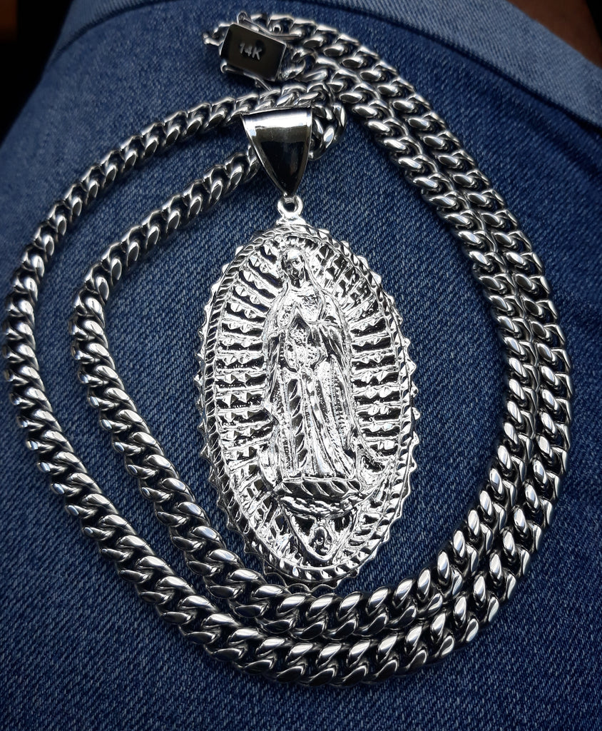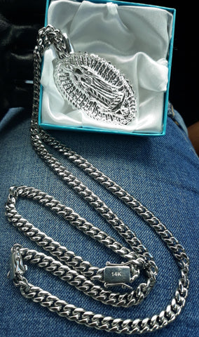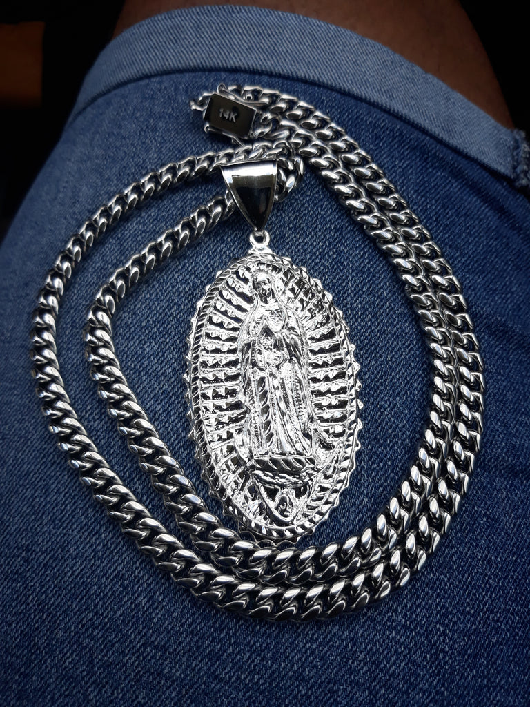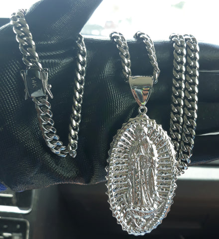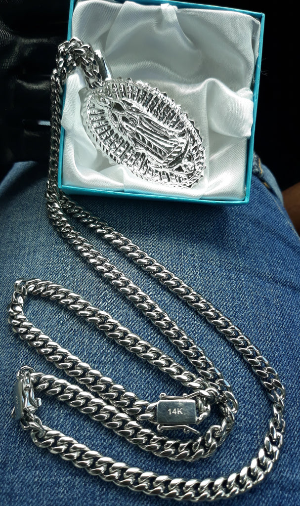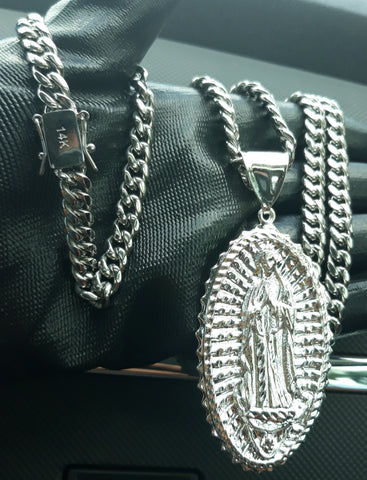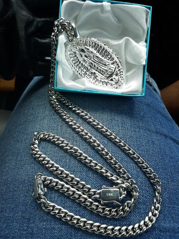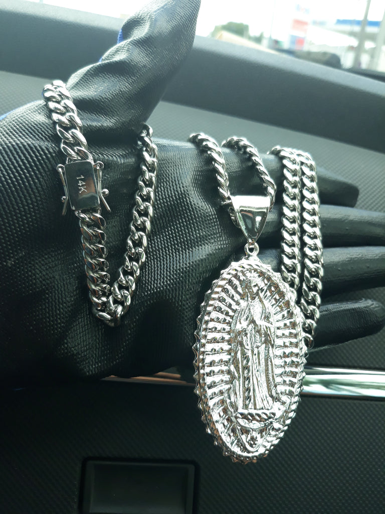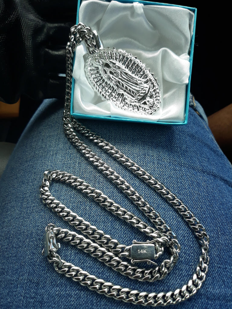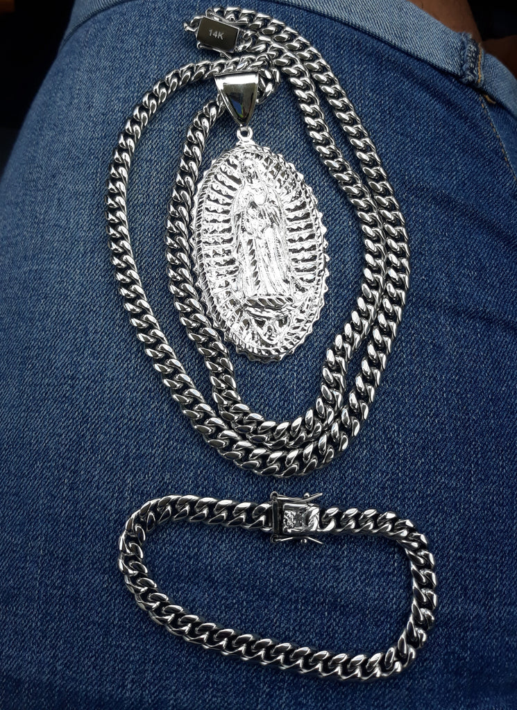 8mm White Gold Plated Cuban link Chain Pendant and Bracelet Set