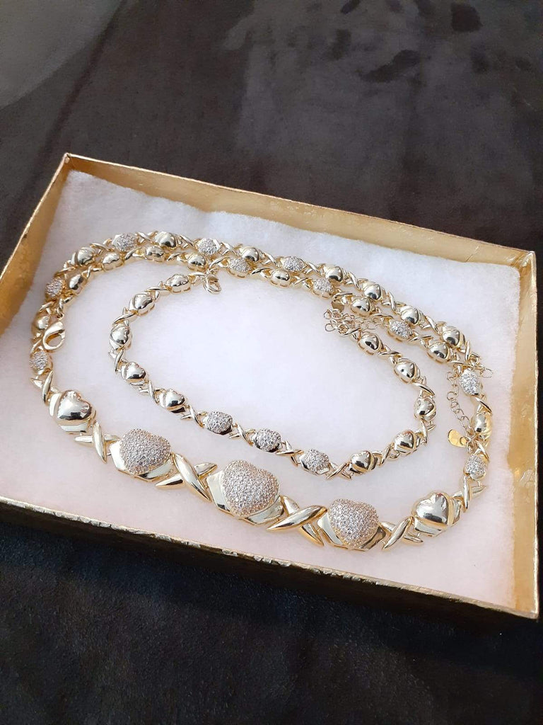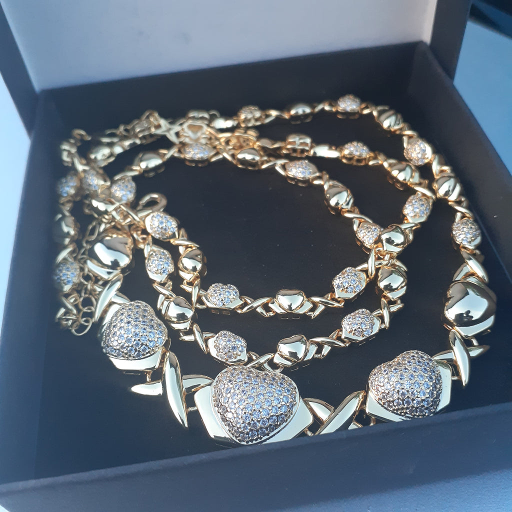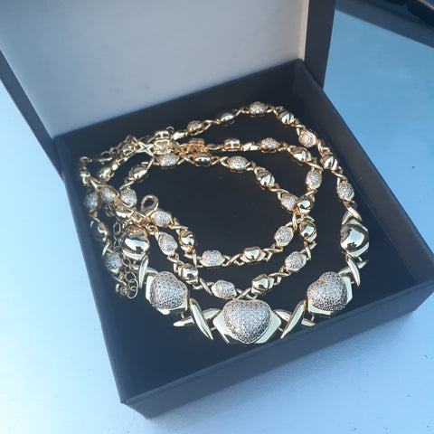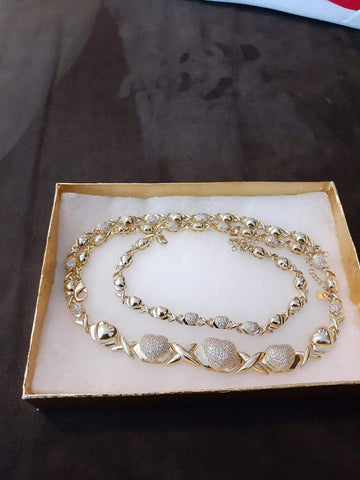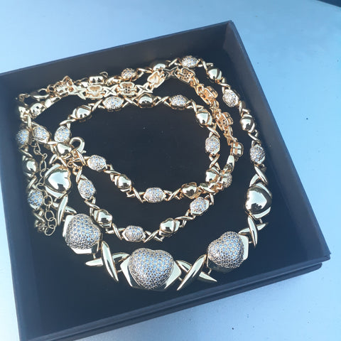 14k Gold Filled Womens 💖 Xoxo Hugs and Kisses With Micro pave Cz Diamonds Full Set Chain And Bracelet